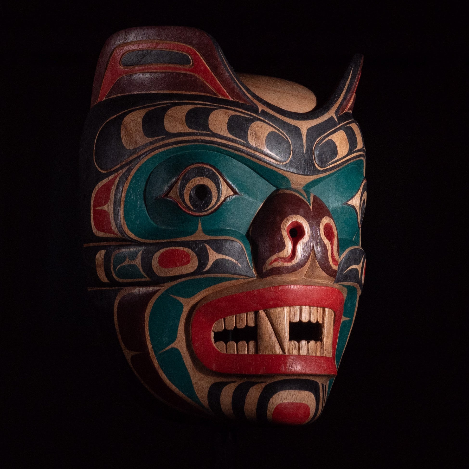 bear spirit mask | pacific northwest tribal style | hand carved hand painted 10" ceremonial reproduction | museum sourceBear Spirit Mask | Pacific Northwest Tribal Style | Hand Carved Hand Painted 10″ Ceremonial Reproduction | Museum Source