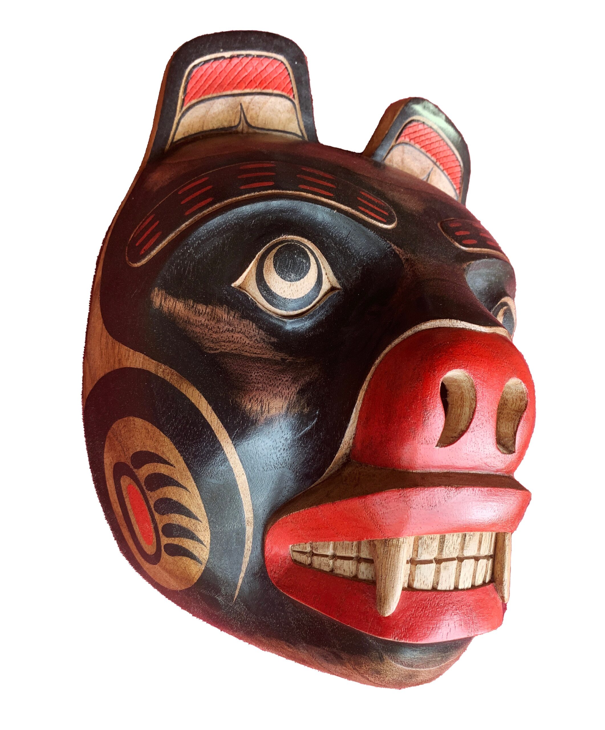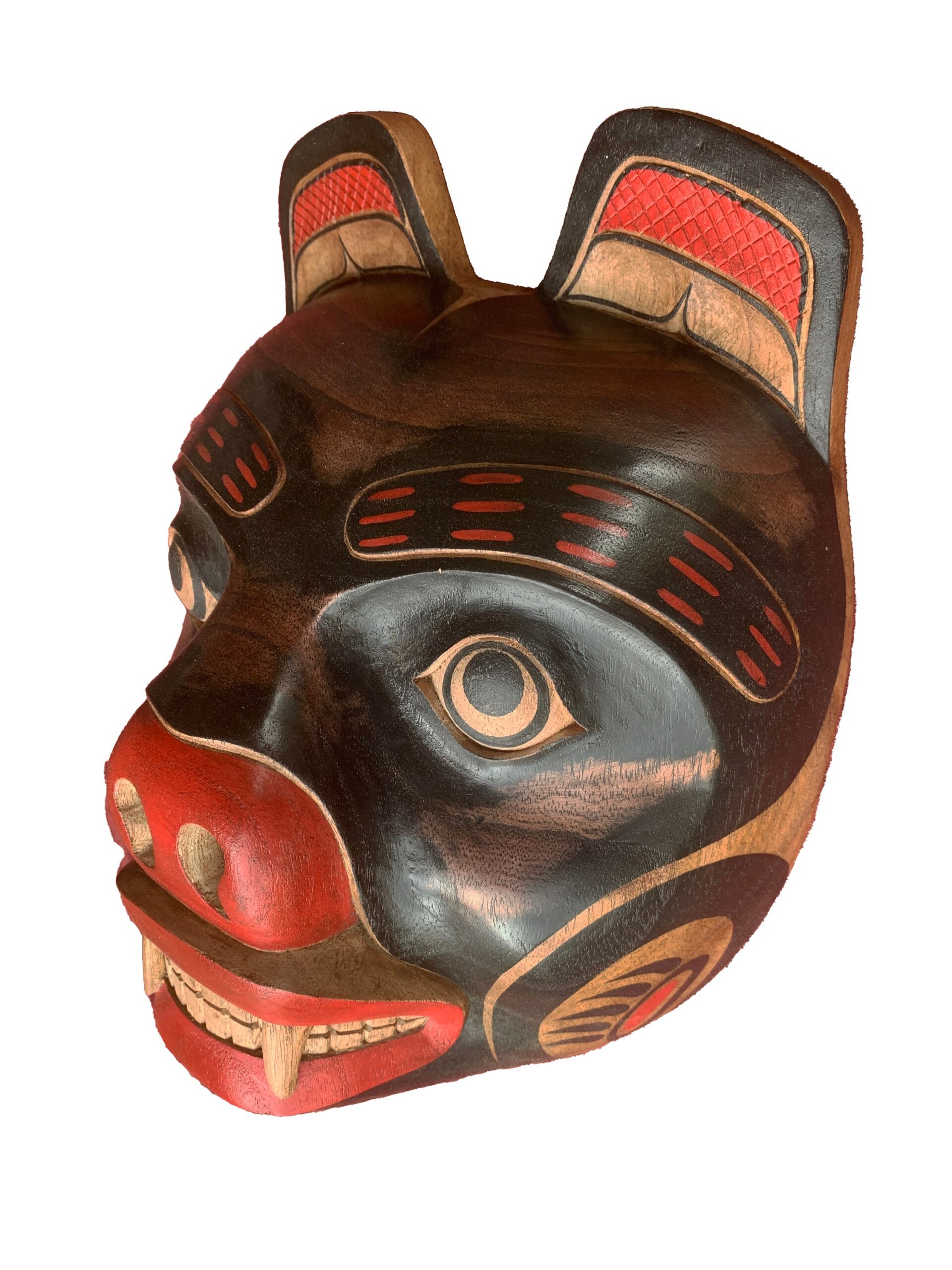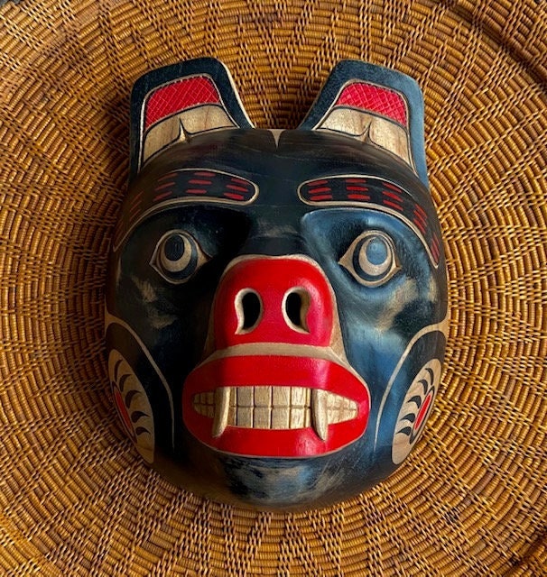 Black Bear Spirit Mask | Pacific Northwest Tribal Style | Hand Carved Hand Painted Reproduction | Museum SourceBlack Bear Spirit Mask | Pacific Northwest Tribal Style | Hand Carved Hand Painted Reproduction | Museum Source