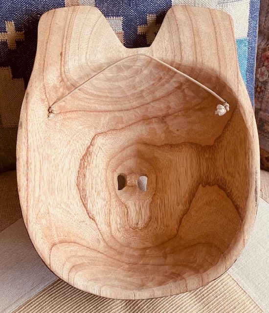Keep your piece out of direct sunlight and away from moisture. A light dusting or occasional wood-safe polish will help preserve its beauty. If you’ve chosen a mask with horse hair or goat hair, and the hair has compressed in shipping, simply comb the hair. in extreme cases, use hairspray and a comb to restore the shape of the hair.