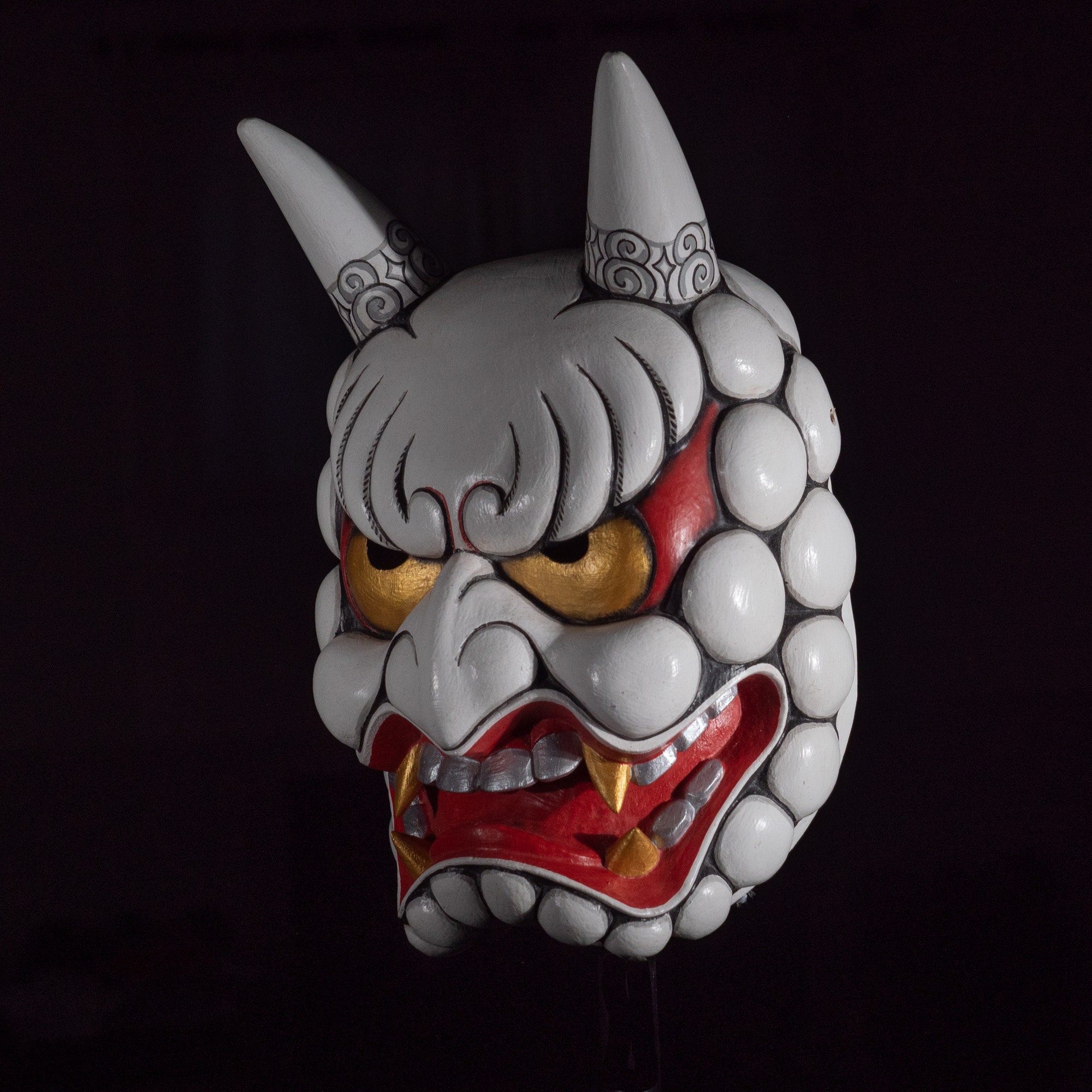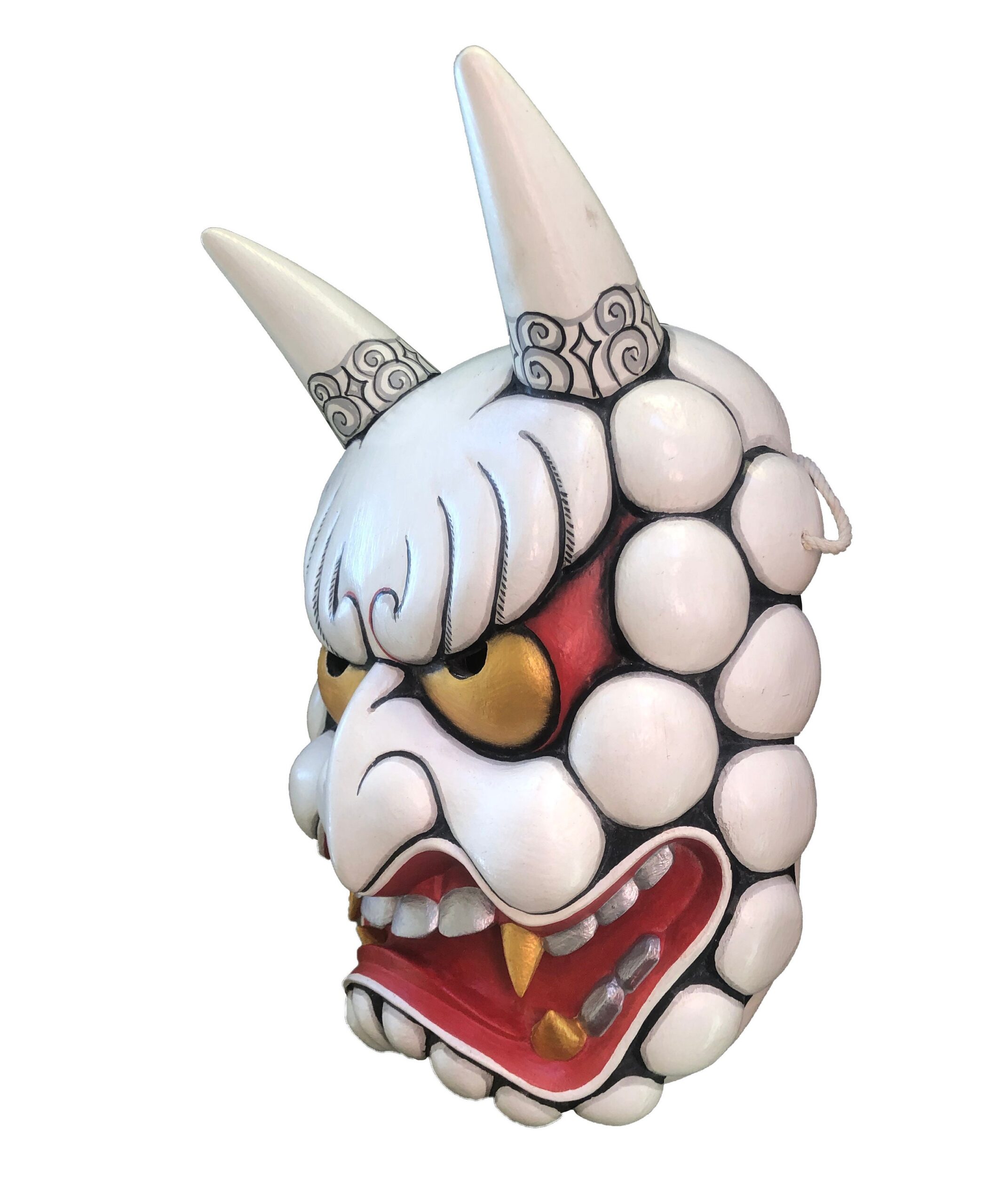 The name Daikijin translates to “Great Devil God”—Dai means great or big, Ki means devil, and Jin means god. This powerful mask symbolizes a fierce protective spirit.